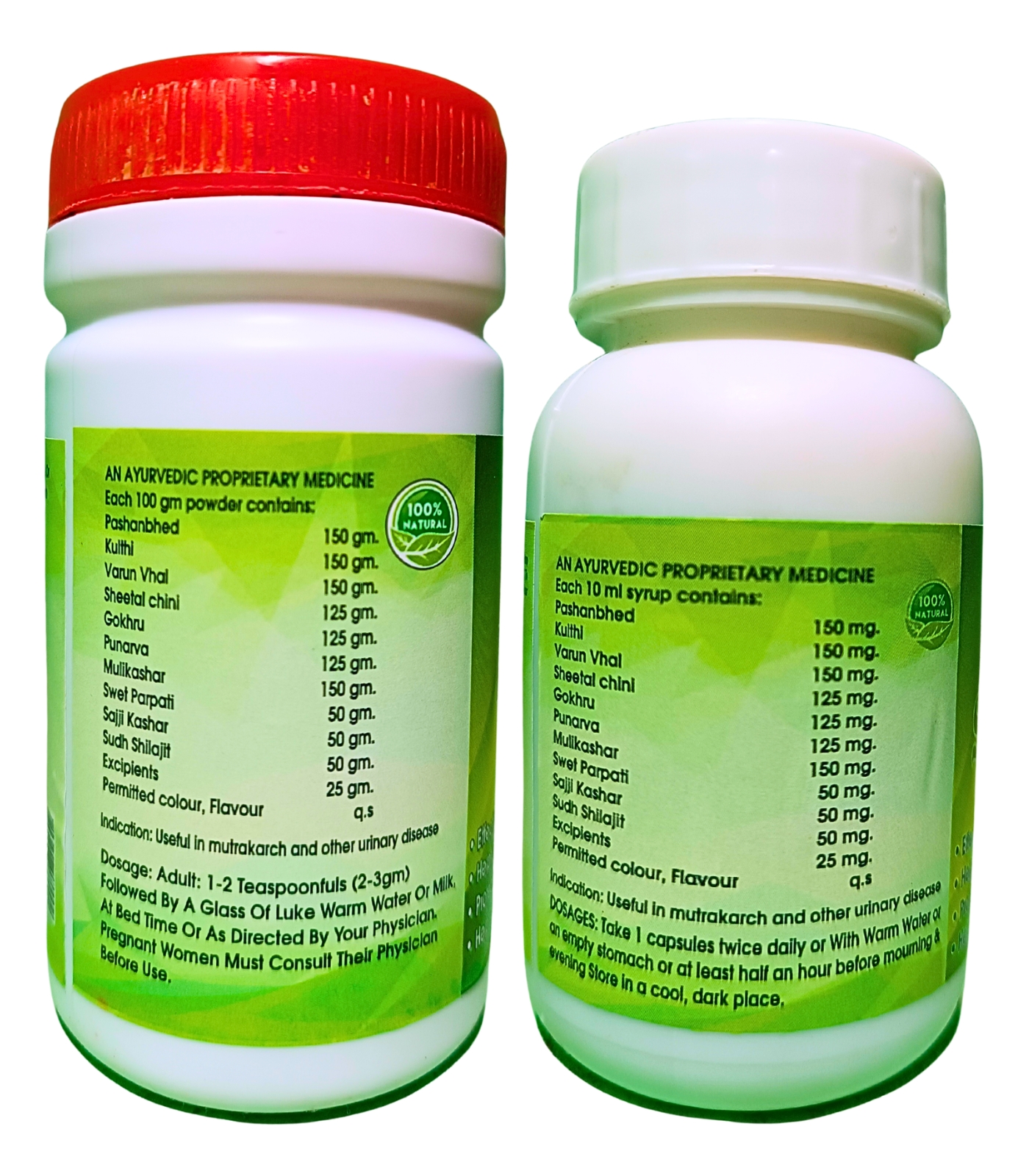 This Ayurvedic Proprietary Medicine is a herbal supplement specially formulated to support kidney and gallbladder health. Made from a blend of powerful natural ingredients like Pashan Bhed, Gokhru Chota, Shudh Shilajeet, and Yahud Bhasam, it aids in the natural relief of stones while being gentle on the body. 100% herbal and free from side effects, it offers a safe and traditional approach to urinary wellness.